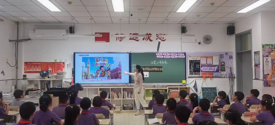 我们在课堂上将音乐生成MV和游戏 ,AI助力,让音乐 “玩”起来。老师将音乐歌曲中的歌词生成可动的MV,我们学习演唱更生动啦!