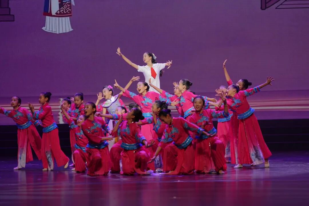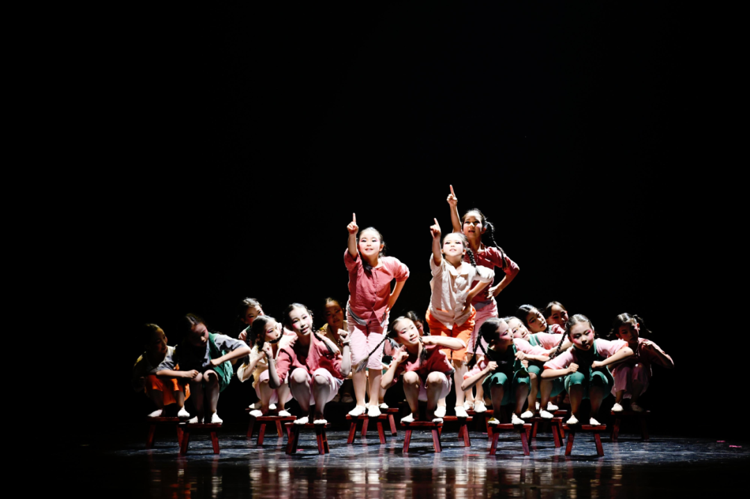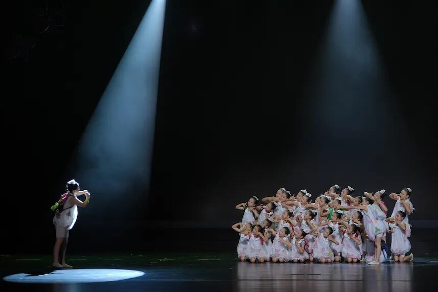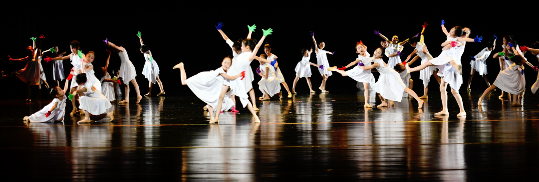 我们的《手偶戏》把传统木偶戏元素与现代舞蹈语汇融合在一起,通过充满节奏的机械动作、乱中有序的队形变换以及夸张的表情……再现了木偶戏的独特魅力。这个舞蹈既传承了非遗文化,又展现了我们当代少年儿童的童真童趣。