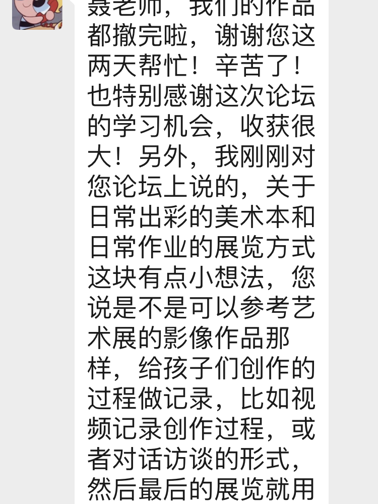我们与美育的大朋友们一起交流,交谈我们对艺术的困惑与热爱,希望听一听美育大朋友们的建议。活动结束后,专家老师们就使劲给我们鼓掌!给予我们鼓励和认可,他们说在这里看到了新颖的创意,看到了舞台上闪闪发光的我们,看到了学校让我们每一个人都站立舞台正中央的理念!