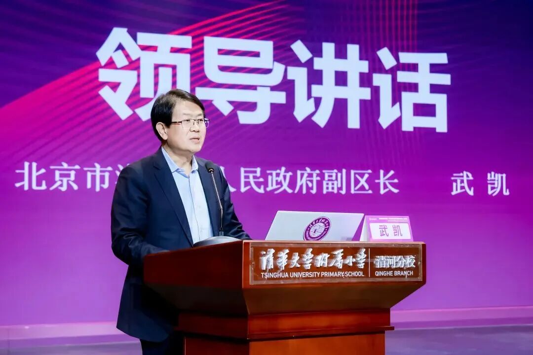 清华大学党委副书记许庆红表示,清华附小教育集团以教育家精神为引领,通过主题教学实践形成了独特的教师集体人格。他表示,这种人格特质已在清河分校得到充分传承——教师们以“担当、奉献、创新”的精神投身教学,推动学校实现跨越式发展,为促进区域教育优质均衡提供了可借鉴的实践样本。