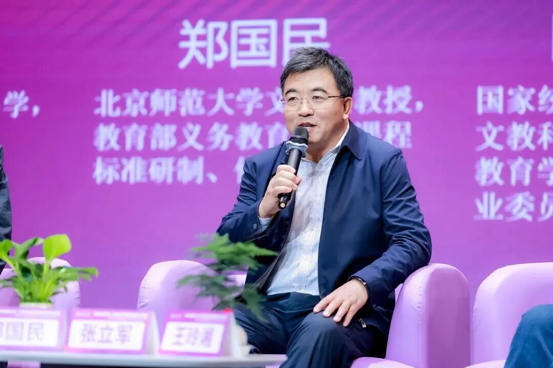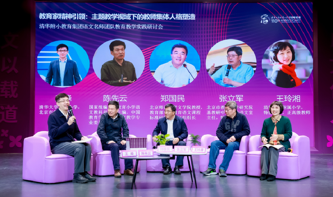 专题论坛由清华附小主题教学研究院执行院长、北京市语文骨干教师王峰主持,教育部义务教育语文课程标准研制修订组组长郑国民,统编义务教育小学语文教材执行主编、中国教育学会小学语文教学专业委员会理事长陈先云,北京市教科院基教研中心小学语文室主任张立军,清华附小特级、正高级教师王玲湘,围绕“主题教学的实践价值与培育路径”“教育家精神的学校实践”等议题对话。