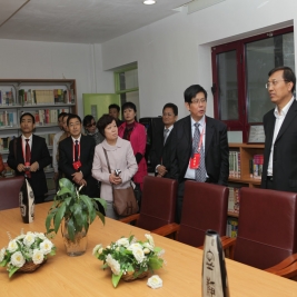 与会领导们参观我校图书馆