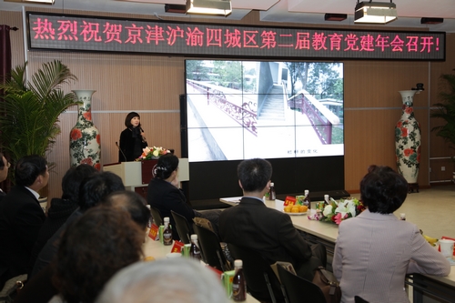为了贯彻党的十七届四中、五中全会精神以及胡锦涛总书记七一讲话精神,加强京津沪渝四城区教育系统的交流合作,提高中小学校党建工作科学化水平,京津沪渝四城区教育系统第二届教育党建年会于2011年10月24日-27日在北京召开。