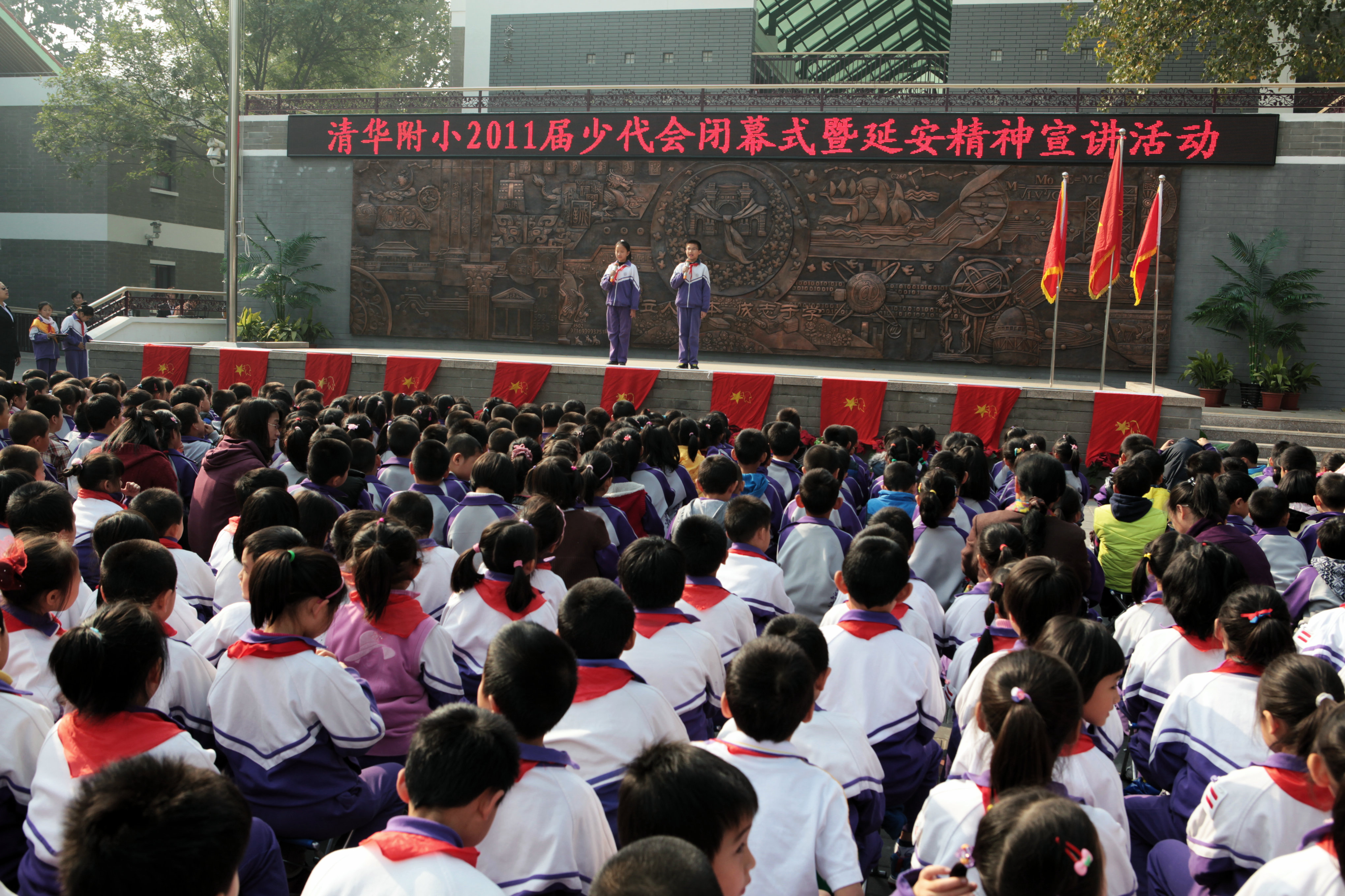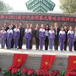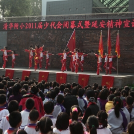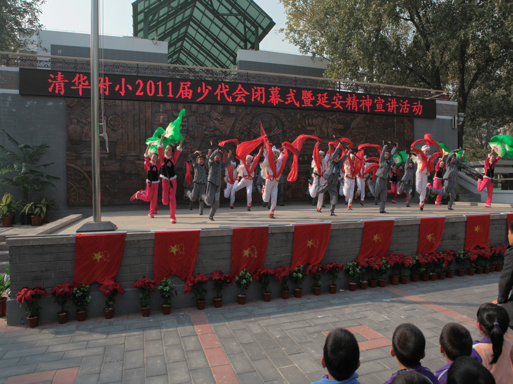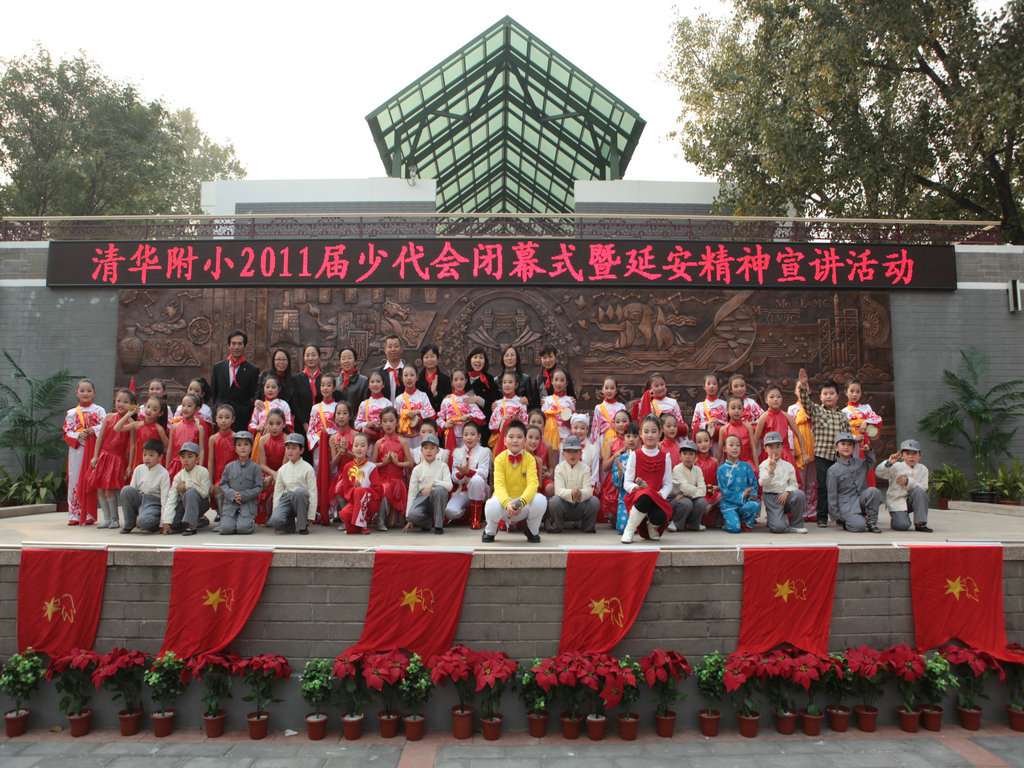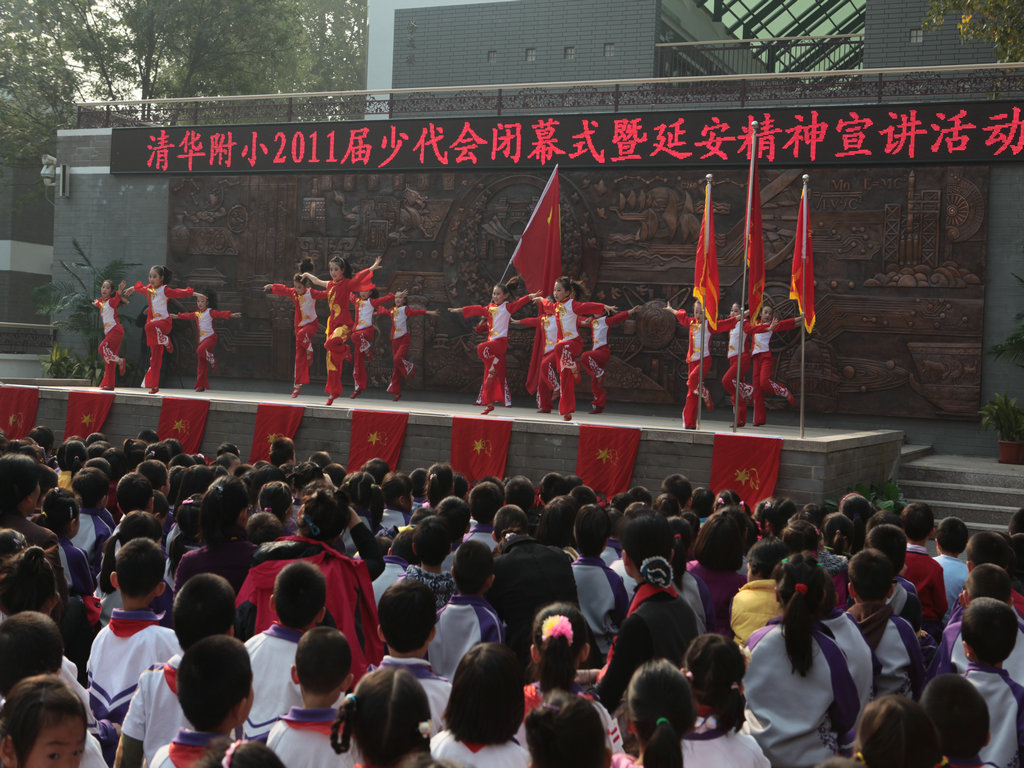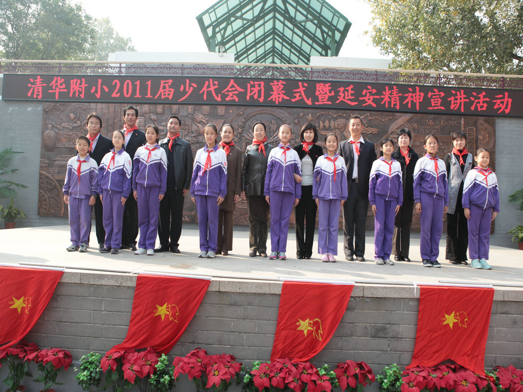 10月27日下午,和着秋冬的阳光,清华附小全体师生欢聚一堂,一起庆祝学校2011届少代会的圆满闭幕。西苑学区杨槟主任、学区少先队总辅导员许长明老师、西苑学区各校德育主管及延安职业技术学院附属小学校长和师生参加了闭幕式。