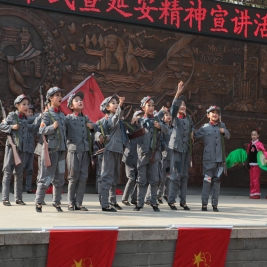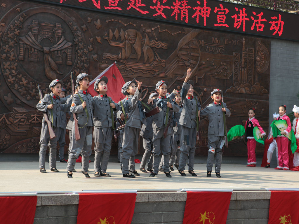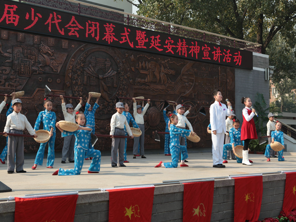 在闭幕式上,由少代会代表民主推选出的新一届大队委员和全校师生见面。与会各级领导亲自为这些队员带上鲜艳的大队长标志。一条杠杠一份责任,当选大队委员是一种荣誉更是一份责任。随后在学校大队辅导员张老师的带领下,新一届大队委员会全体成员面对鲜艳的队旗进行了庄严的宣誓。与此同时,学校对本届少代会中所提交的30份提案分别做了书面公示解答,充分体现学了校领导对本届少代会的高度重视。 闭幕式上,延职附小带来了精彩的演出。他们以歌舞、快板、宣讲等形式,向附小师生展示了光照千秋的延安精神。