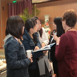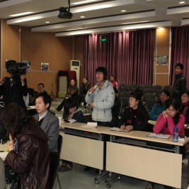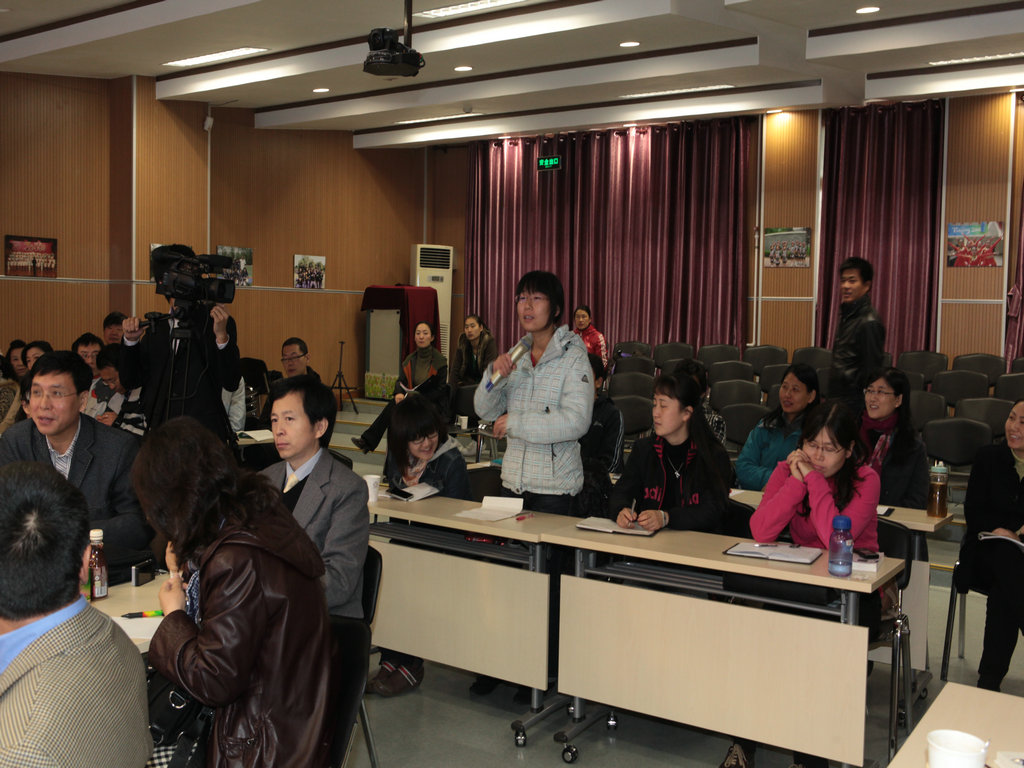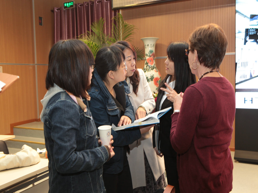 交流中老师们还传阅了美国中小学教材,特别是美国学生自编的教材让在场的老师们惊讶赞叹。交流过程中,老师们针对自己关注的问题自由提问,都得到了耐心、详尽的解答。对于中美教育的差异与共同之处有了初步的认识与了解。