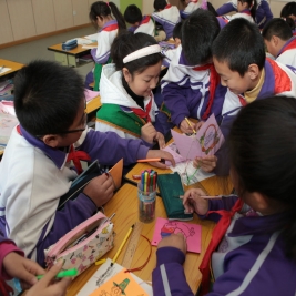 学生正在完成感恩小卡片