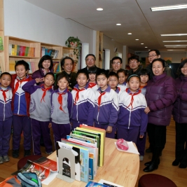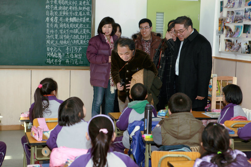 会后,清华附小校长窦桂梅陪同朱永新、佐藤学先生走进课堂,亲切询问学生的学习情况;在图书馆,朱永新、佐藤学先生饶有兴趣地与正在阅读的学生交流合影,当佐藤学看到自己的著作时,欣然签名。大家还走进书法教室、美术教室、文化长廊等参观。附小作为新教育试点学校,大家对学校的文化建设、课程开发等给予了高度评价。