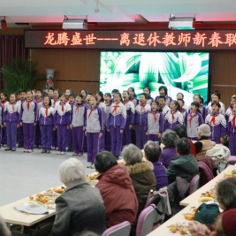 2011年12月26日,清华附小闻道厅欢声笑语、温暖如春。50多名离退休老教师代表欢聚一团,举行了“龙腾盛世——新春联欢会”。清华大学离退休工作处副处长南彬、清华附小校长窦桂梅及领导班子参加了联欢会。