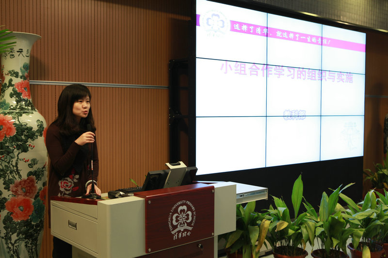 接下来,分别由王艳、张勇丽、蔡建敏、王祎、刘靖、李群生、祝军、张晖8位老师代表各学科、低中高三个年段所开展小组合作学习的实际情况与方法进行了汇报交流。研讨会充分全面的展示了清华附小教师团队对小组合作模式的探索与研究,同时也体现出了清华附小教师努力发展自己,成就自己,不断超越自己的精神追求。