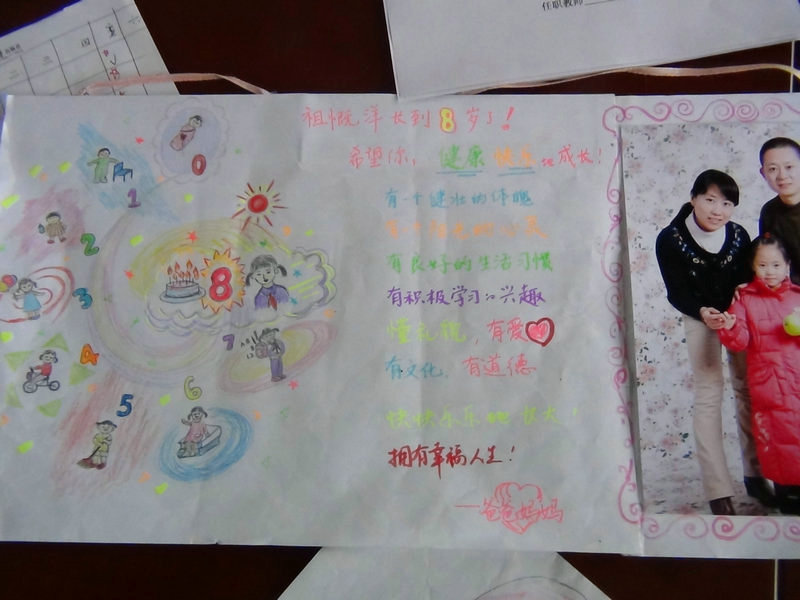 于是,在和孩子一起制作“成长卡”时,成长的每个阶段都跃然纸上,我们也重温了整个的历程,有欢乐也有汗水,充满了温馨和感动。