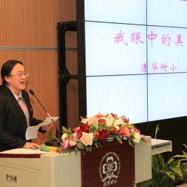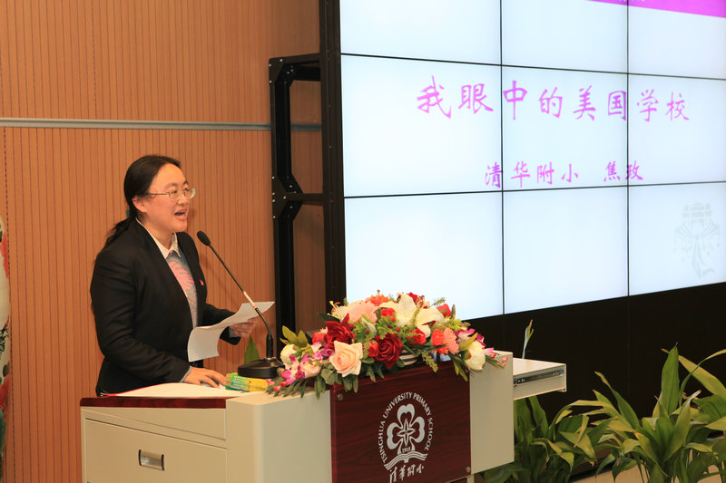 之后焦玫老师就访问美国学校做了汇报。出访的孩子们,在课堂上与美国孩子一起学习,培养了合作的精神;在童子军训练营中参观雄鹰奖章,学到了美国人的坚定与自立;在传统私立特许小学收获了友好与感恩;在卡纳基斯小学表演了二胡、京剧、竹笛、葫芦丝和书法等中国传统才艺,并赠送了礼物,传达了中国人民的友好;在斯坦福与加州大学的校园参观,让他们放飞了理想。美国之行,孩子们完成了自己的责任,将异国文化带回了清华附小。