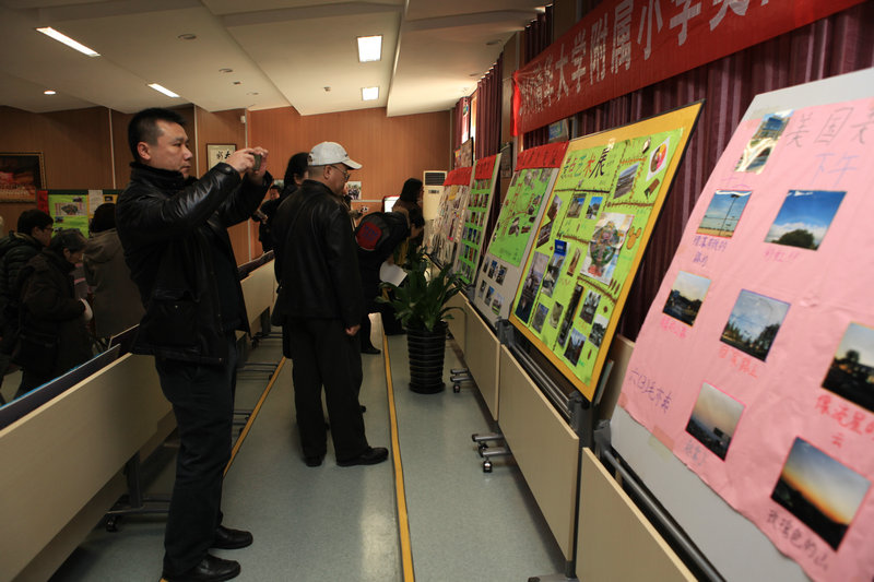 家长们观看展板